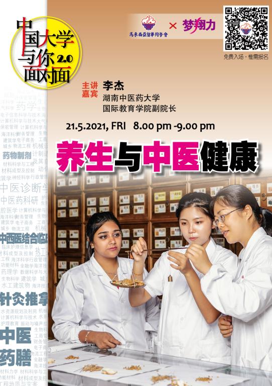 2021年5月21日,我校积极参加由马来西亚留华同学会主办的“留华桥”中国高等教育e展,并做了“中医健康与留学湖中大”为主题的中医专场宣讲会,在与会的来自40余所马来西亚独立中学的近千名师生中引起热烈反响。