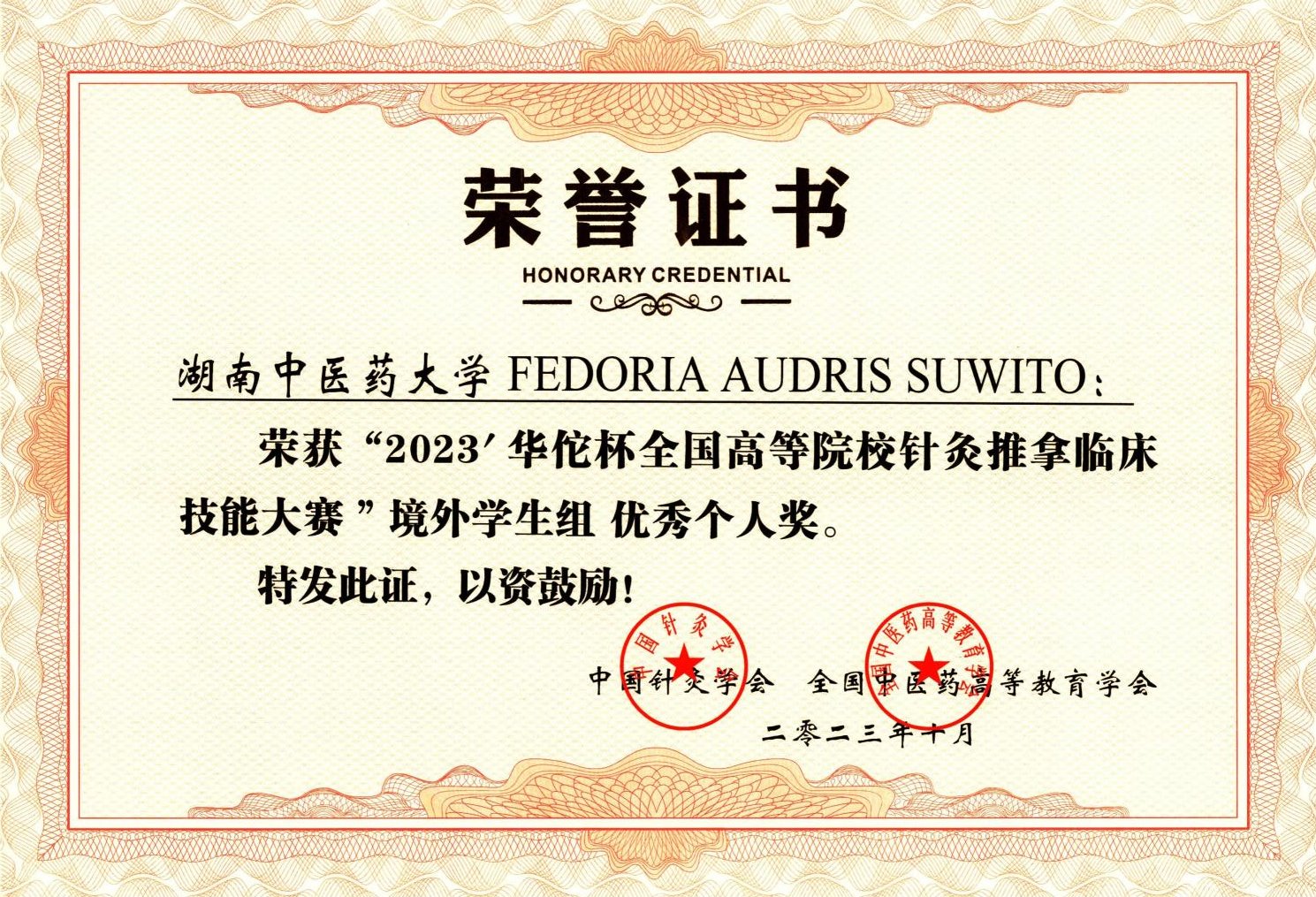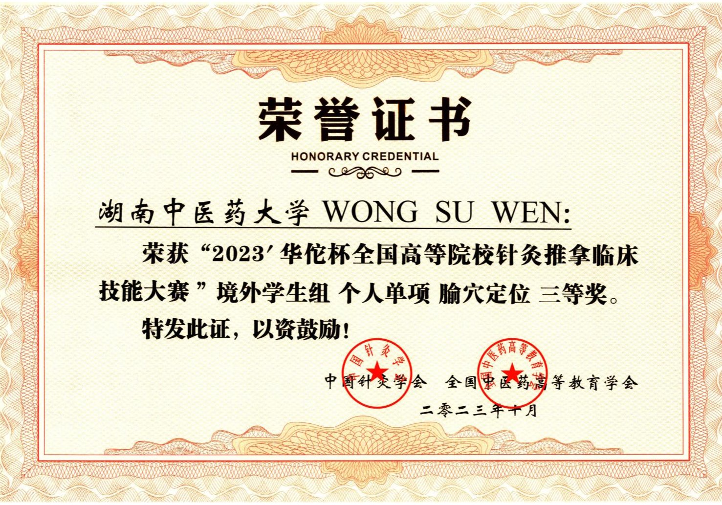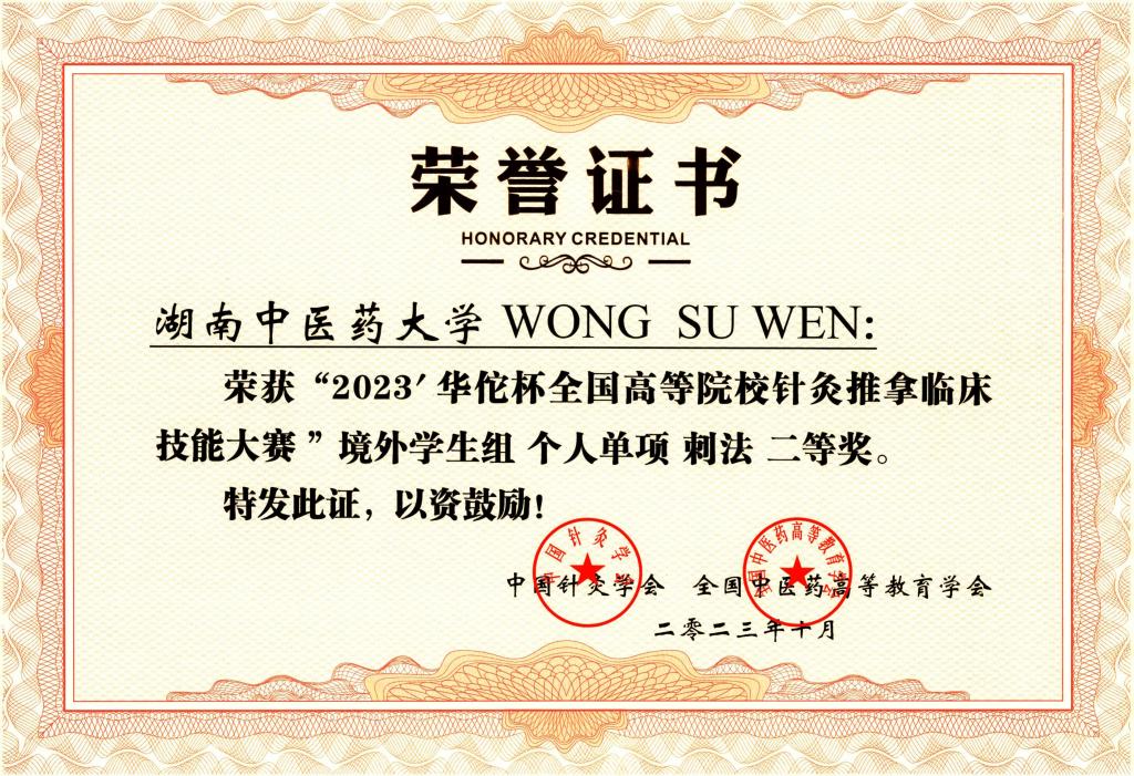 我院国际学生在2023年全国高等院校针灸推拿临床技能大赛获奖