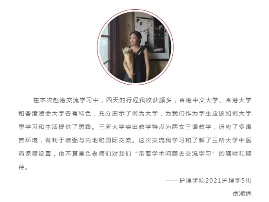 赴港访学的同学们参观了香港大学中医专科诊所暨临床教研中心、中医临床技能培训中心和中药标本室等教研场所;同学们还参观了香港医学博物馆和香港科技园,以亲身参与的方式深切感受到了中医药产业与科技的融合,了解了香港中医药企业在科研创新和产品开发方面的努力,以及香港中医药的实践情况和管理模式;在香港浸会大学,同学们参观了该校建设的中医药博物馆,中草药标本馆等,进一步加深了同学们对香港中医中药发展进程的及与内地中医药制度差异的认知与了解。