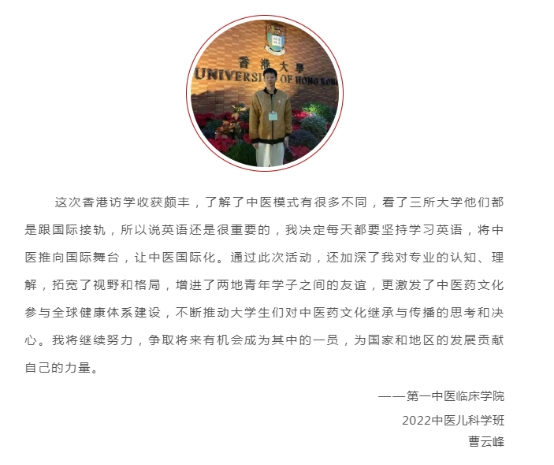 此次寒假境外学习交流项目是融合了高校、研究所和医院的多维全方位参观与学习,是一次集学术、医疗、文化于一体的交流与体验活动。项目结束后,同学们表示开拓了学习视野,启发了学习思路,是一次收益匪浅的学习经历。在悉尼大学,学生们感受到了南半球顶级学府对于科研严谨的态度与真挚的热爱,切身体会了澳洲多元文化的包容与认可,体验了分级医疗体系和研究所管理的便捷与高效,更看到了中医药在澳洲的蓬勃发展与规范化管理。在香港,他们感受到了香港高校浓厚的学习氛围,见证了中医药文化参与全球健康体系建设的力量与贡献,明确了大学生们对中医药文化继承与传播的思考和决心。同学们均表示希望今后有更多的机会走出去,用更广阔的视角探索世界,学习科学的方法与先进的技术,寻得中医药发扬光大的道路,让全世界认可中医,更加“信中医、爱中医、用中医”。