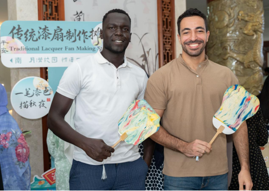 此次“月满校园・情连四海”中秋主题活动,不仅让雷火竞技官网的国际学子沉浸式体验了中秋习俗,更让大家在轻松愉快的氛围中感受到了来自学校的关怀与温暖。活动现场,不同国家的学子互相分享本国节日文化,在交流中打破文化隔阂,凝聚友谊。“虽然不能回家过节,但在这里和朋友们一起做月饼、绘制漆扇,感觉特别温暖,就像在自己国家一样。” 来自摩洛哥的学生李军说道。