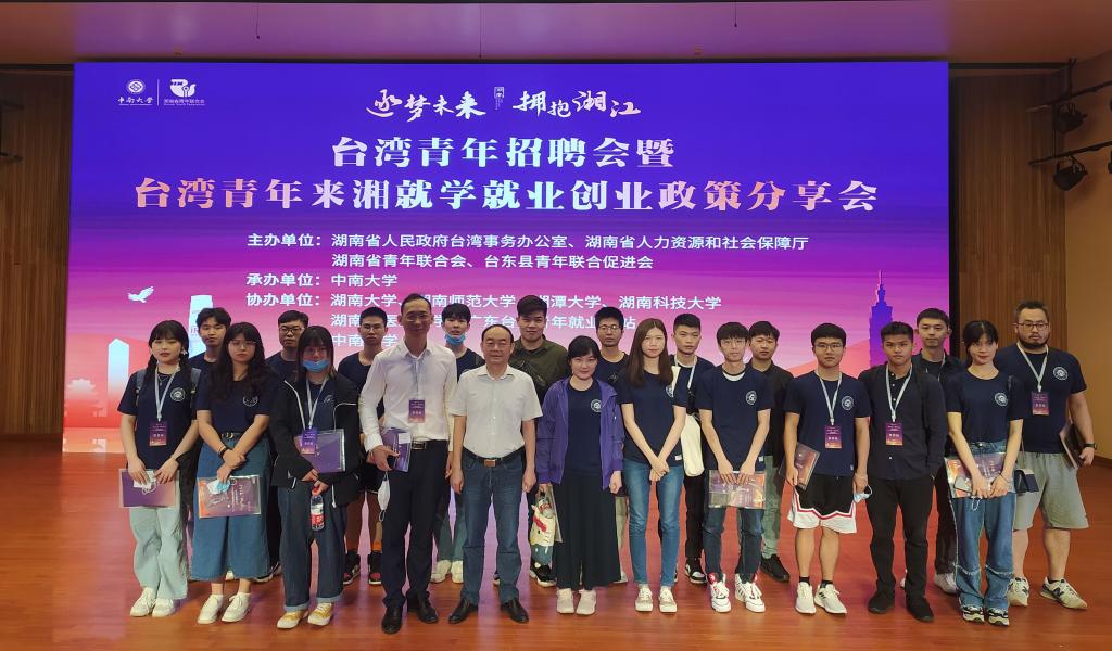 为深入贯彻习近平总书记关于深化两岸交流合作与融合发展一系列重要指示精神,5月14日,刘鸿翔副校长带队组织我校20名台籍学生赴中南大学参加由湖南省人民政府台湾事务办公室主办的台湾青年招聘会暨台湾青年来湘就学就业创业政策分享会。