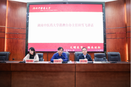 港澳台办公室主任田雪飞为2023级港澳台全体新生致欢迎辞,希望同学们在本科期间学习快乐、学有所成、学有所用。祝愿同学们在新征程、新阶段中取得满意的成绩,两岸三地相互成就,相互添彩,实现共同梦想。