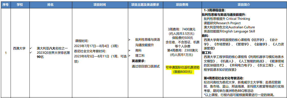 为推动我校教育国际化进程,开拓学生国际视野,进一步满足学生赴境外学习交流的需要提升英语表达能力和跨文化交流能力现启动澳大利亚西澳大学2023暑期访学项目欢迎同学们踊跃报名。