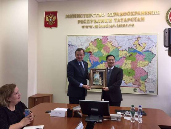 与俄方鞑靼斯坦共和国卫生部长互赠礼品